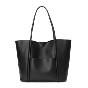 Cowhide Commuting Shoulder Tote Bag Black